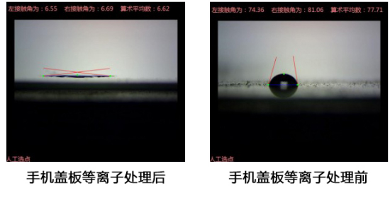 由處理前的接近50°下降到5°以內(nèi),說(shuō)明潤(rùn)濕性提高很多。