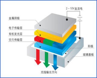 有機電致發(fā)光器件(OLED) ,因其自發(fā)光,亮度高,可視角度大等諸多優(yōu)勢,在顯示和照明領(lǐng)域備受青睞,具有極大的應用前景。由于氧化銦錫(ITO)導電薄膜具有良好的導電性,以及在可見光范圍內(nèi)具有較高的透光率,使之廣泛應用于光電領(lǐng)域,在有機電致發(fā)光領(lǐng)域也常常作為OLED的陽極材料。