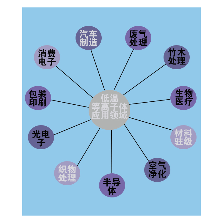 (幾個至十幾電子伏特),完全可以破裂有機大分子的化學(xué)鍵而形成新鍵;但遠低于高能放射性射線,只涉及材料表面,不影響基體的性能。處于非熱力學(xué)平衡狀態(tài)下的低溫等離子體中,